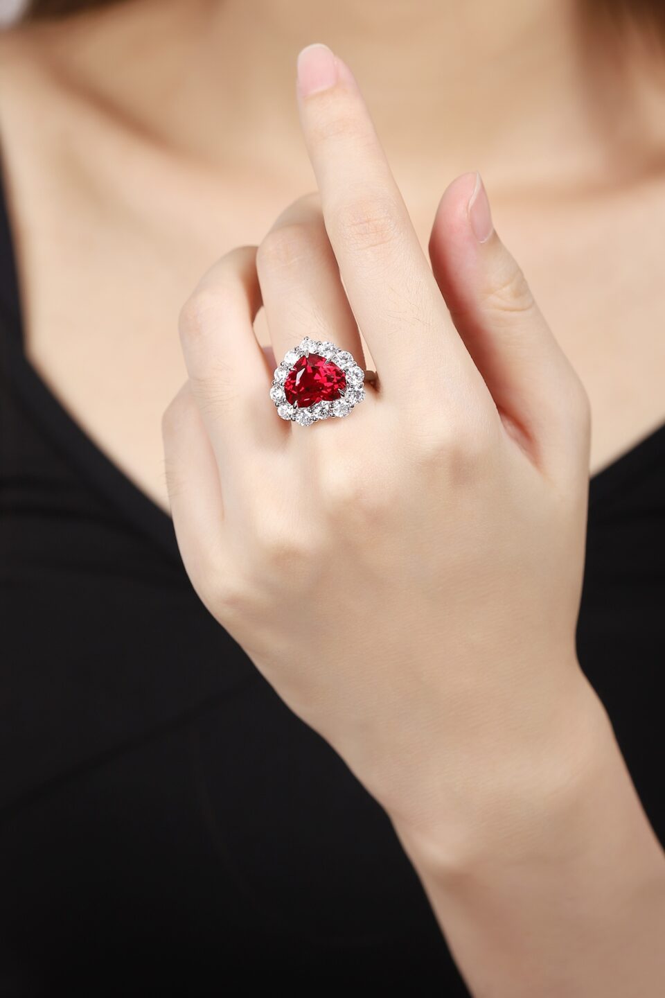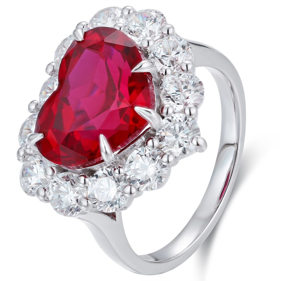 5.82-Carat Heart-Cut Lab-Grown Ruby of Diamond Simulants Gemstone Sterling Silver Ring