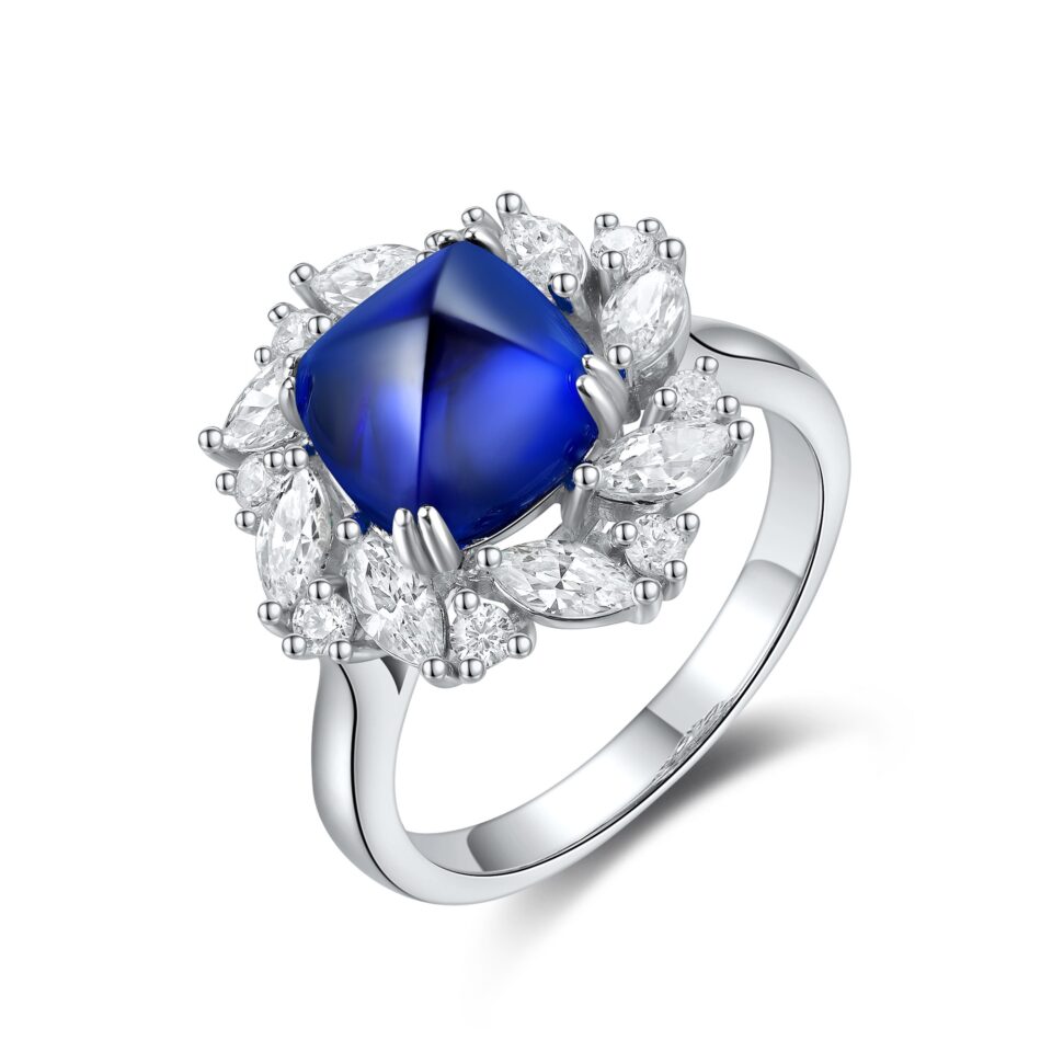 3.48-Carat Sugarloaf-Cut Lab-Grown Sapphire of Diamond Simulants Gemstone Sterling Silver Ring