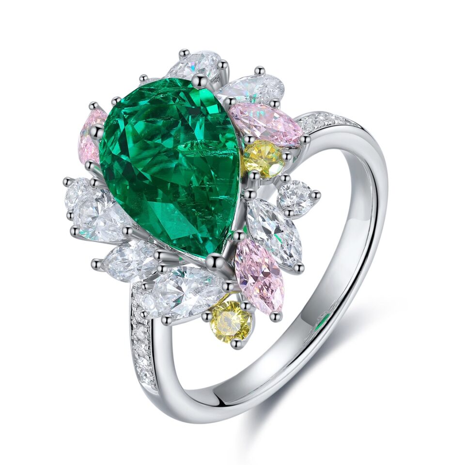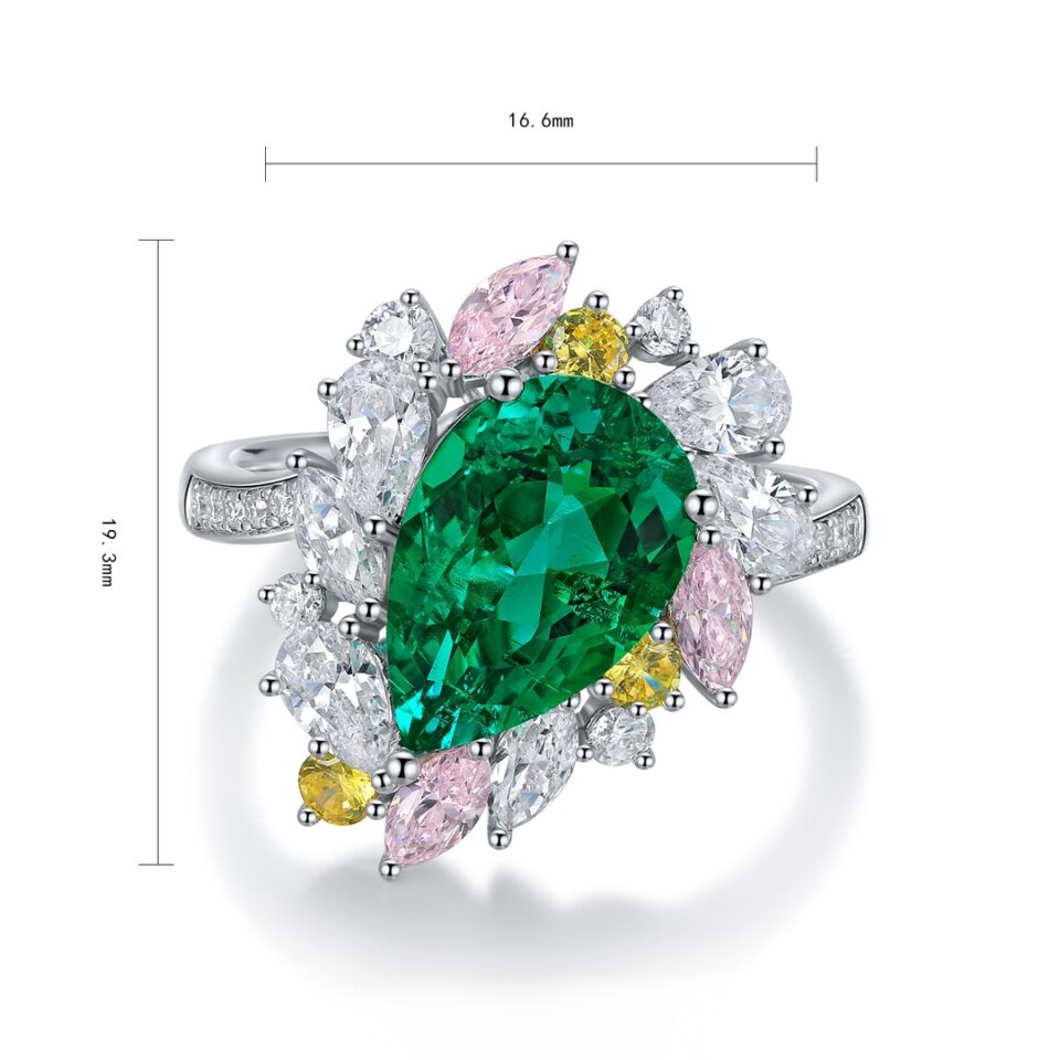 This Lab-Grown Emerald of Diamond Simulants Gemstone Sterling Silver Ring is centered around a striking emerald-cut stone, lab-grown to premium quality for its rich color depth and geometric brilliance. Paired with delicate clusters of marquise and round high-quality AAAAA cubic zirconia diamond simulants, the design feels airy yet impactful. Set in polished Sterling Silver, this piece is perfect for those who appreciate classic structure with a modern twist.