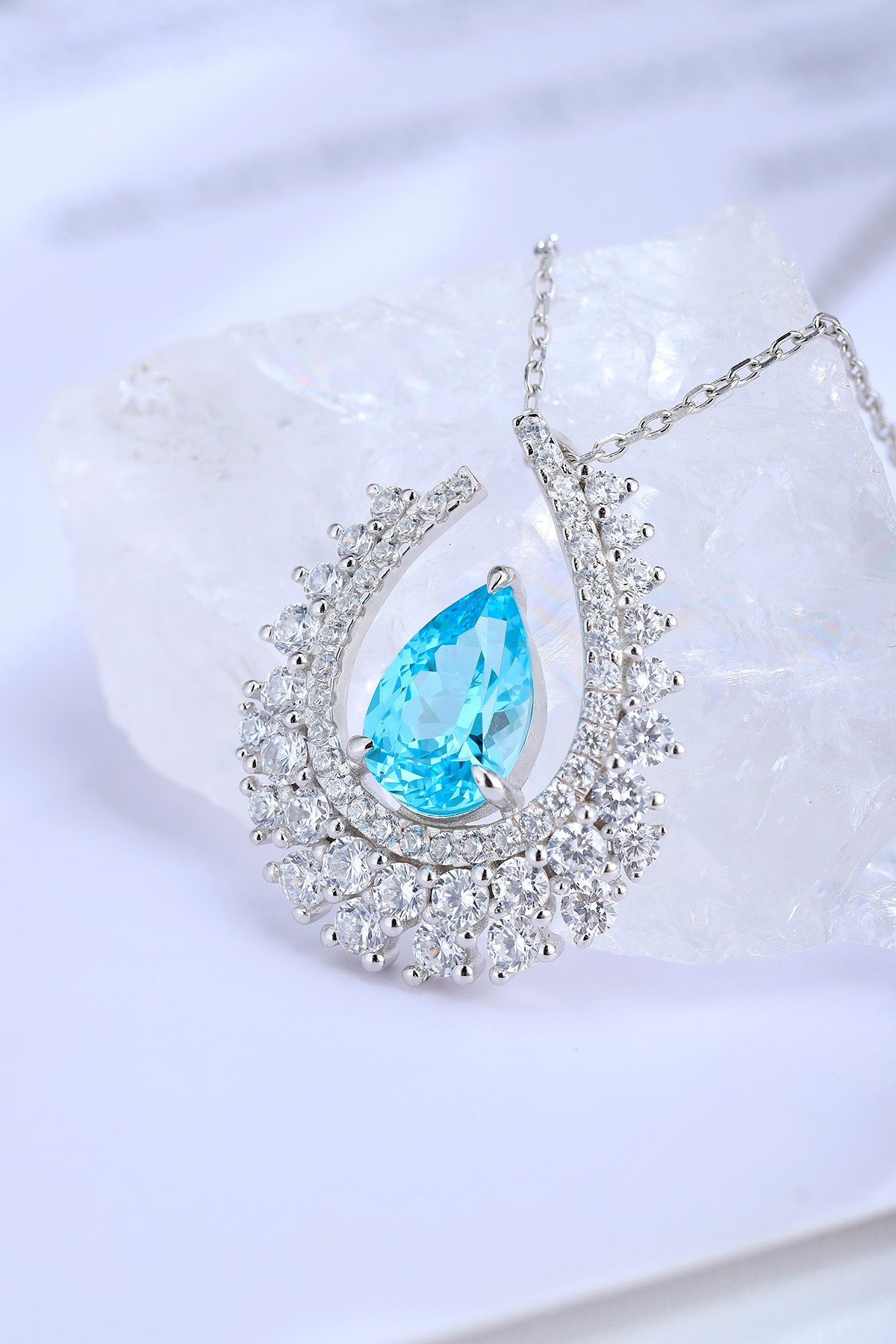 Be the first to review “3.4-Carat Pear-Cut Lab-Grown Paraiba Gemstone & Diamond Simulants Sterling Silver Necklace”