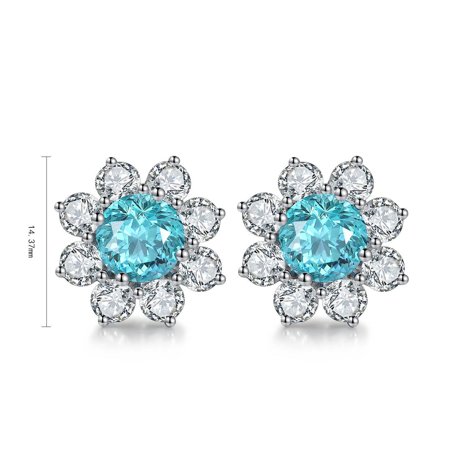Delight in timeless floral charm with these Sterling Silver Earrings, featuring radiant 3.69-carat round Lab-Grown Paraiba gemstones framed by brilliant diamond simulants in a blooming flower design.