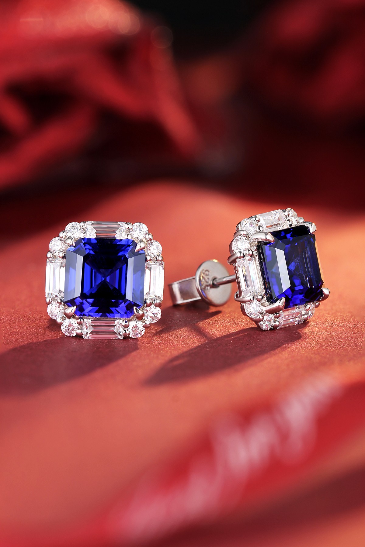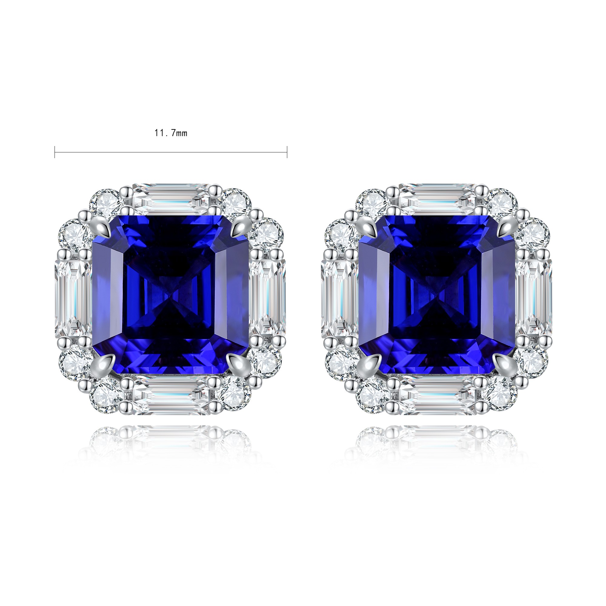 Be the first to review “6.74-Carat Emerald-Cut Lab-Grown Blue Sapphire of Diamond Simulants Gemstone Sterling Silver Earrings”