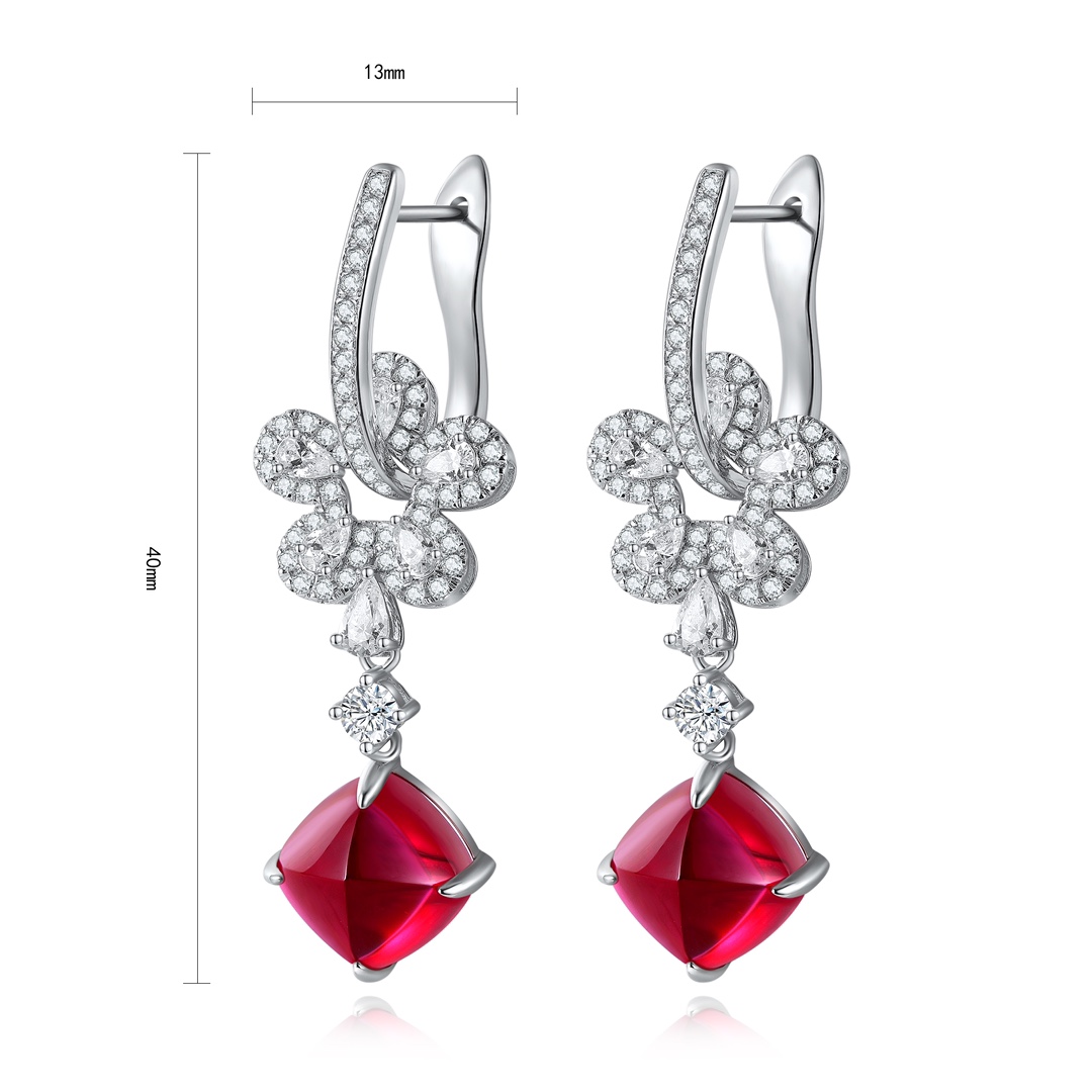 Be the first to review “8.48-Carat Sugarloaf-Cut Lab-Grown Ruby of Diamond Simulants Gemstone Sterling Silver Earrings”