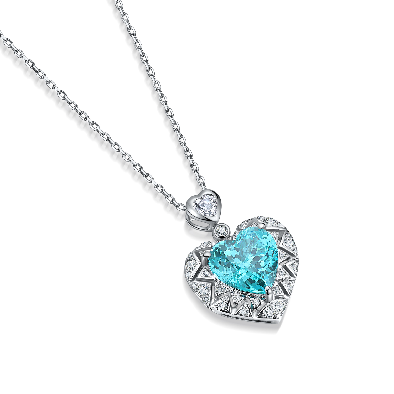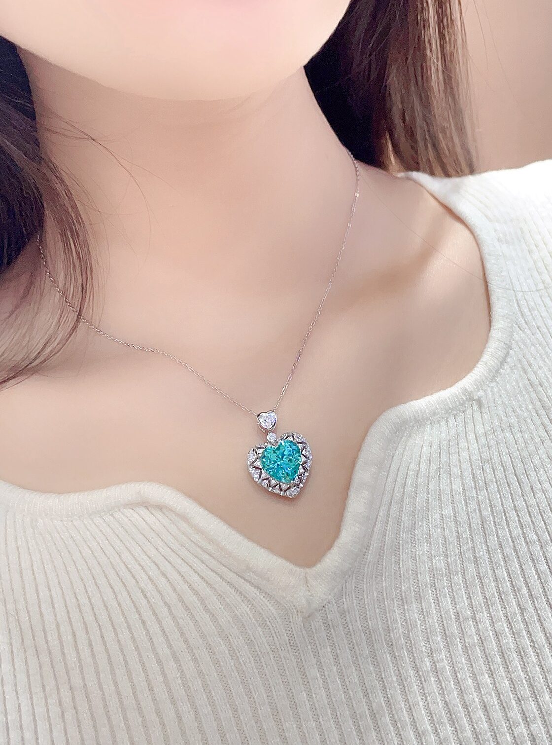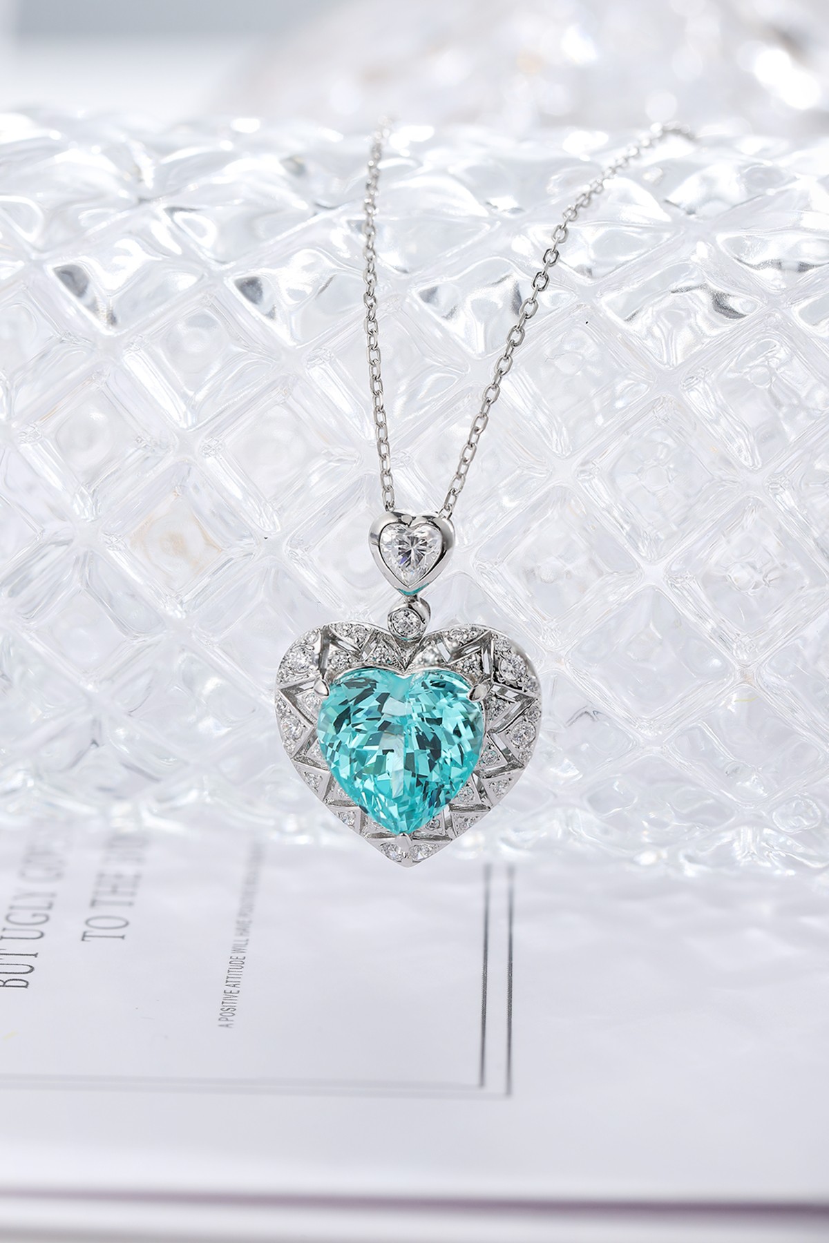 Be the first to review “8.488-Carat Heart-Cut Lab-Grown Paraiba Gemstone & Diamond Simulants Sterling Silver Necklace”
